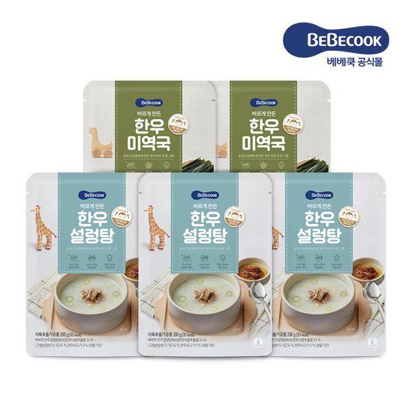 [베베쿡] 바르게 만든 한우국 5개 (한우설렁탕/한우미역국)