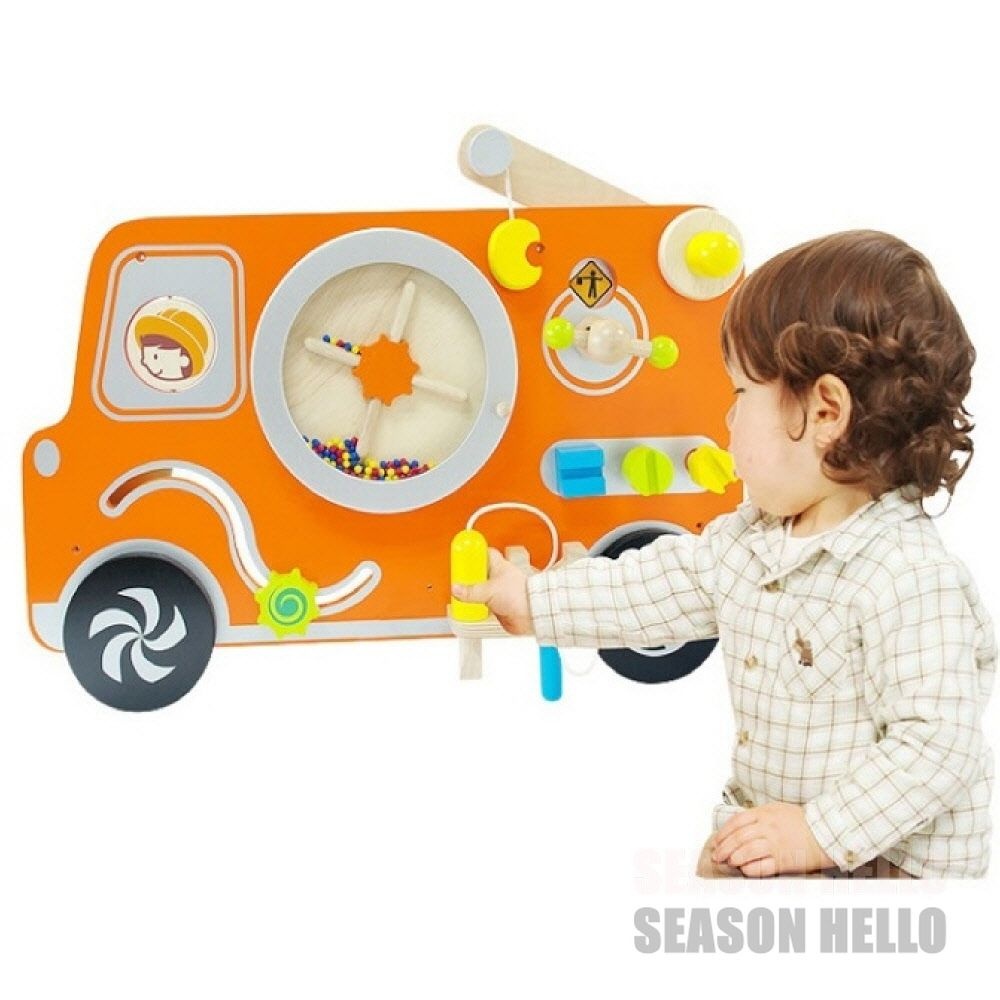아임토이 벽걸이교구 중장비 돌아기선물 원목장난감 아기교구